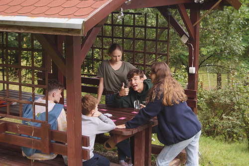 Od 1999 nasz obóz letni organizujemy w tym samym, jednorodzinnym domu położonym na stoku górskim, posiadającym 5 pokoi gościnnych, oddawanych na czas naszego pobytu w całości do naszej dyspozycji. Dom jest wyposażony w jadalnię-salę, gdzie podawane są doskonałe posiłki, przygotowywane przez właścicielkę posesji, oraz prowadzone zajęcia. W najbliższej okolicy nie ma innych domów, rozglądajc się wokół widzisz tylko zbocza górskie i las. Doskonały teren do różnego rodzaju gier terenowych, typowych dla US Summer Camps.